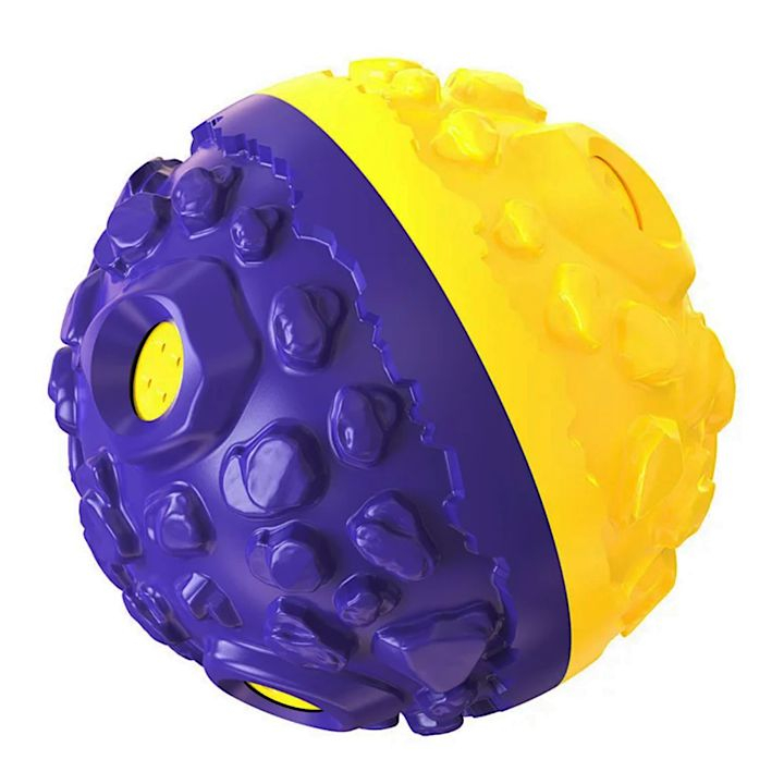 اسباب بازی دندانی طرح توپ با داشتن برآمدگی های گرد علاوه بر جنبه سرگرمی، باعث تمیز شدن دندان های سگ ها می شود. شما می توانید برجستگی های روی اسباب بازی را با خمیر دندان مخصوص حیوانات اغشته کرده؛ وقتی حیوان شما اسباب بازی را گاز میگیرد، حفره و برجستگی ها اصطکاک بیشتری بر روی دندان های آسیاب ایجاد می کنند که باعث از بین رفتن جرم و کثیفی ها شده و سلامت دهان و دندان پت شما را تضمین میکند. این محصول از یک نوع پلاستیک سخت ساخته شده است که در برابر گاز گرفتن حیوان بسیار مقاوم است. علوه بر این باعث افزایش هیجان و انرژی پت شما شده، قدرت فیزیکی او را تقویت می کند و استرس حیوان شما از بین خواهد برد.