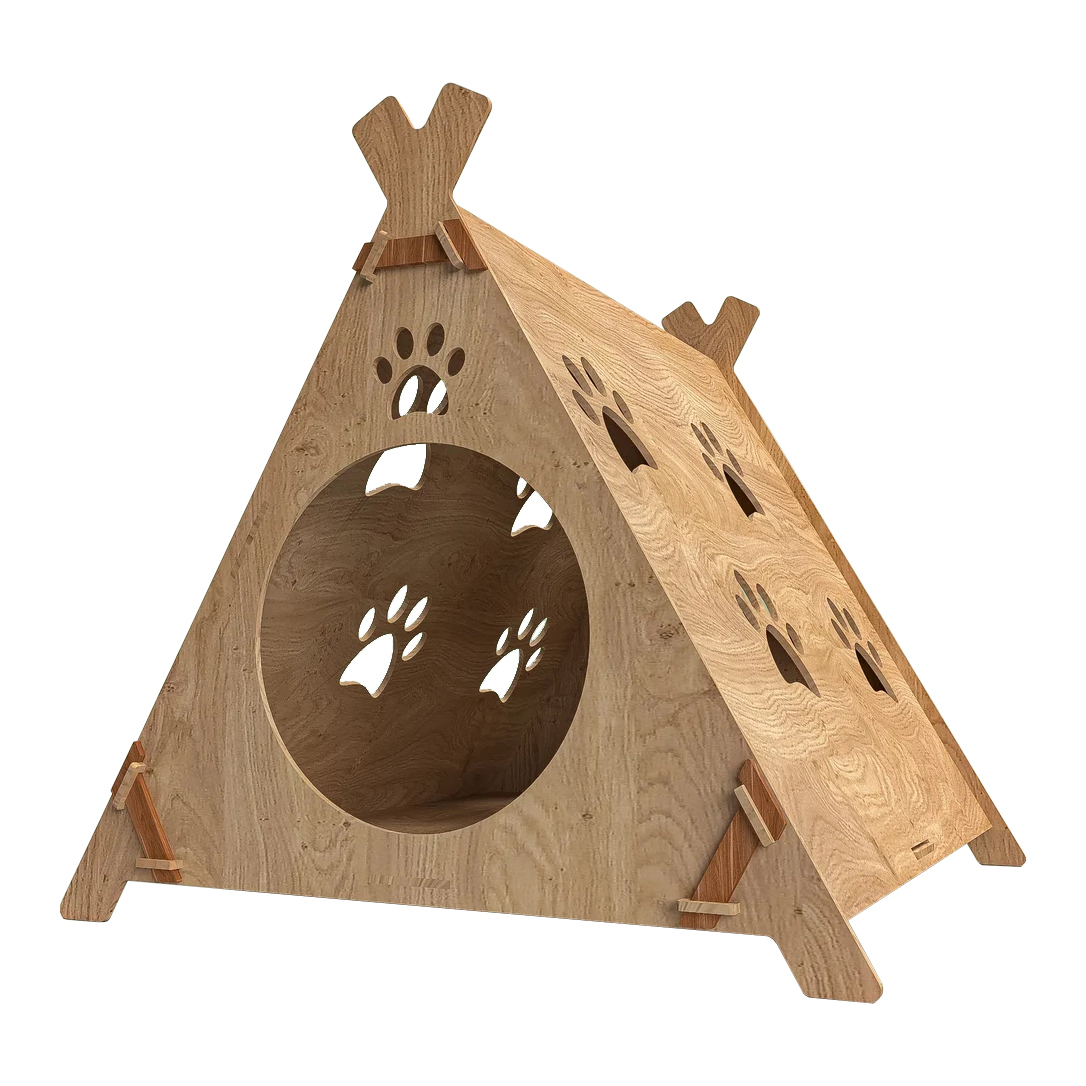 جای خواب سگ و گربه مدل لانه چوبی کد B99