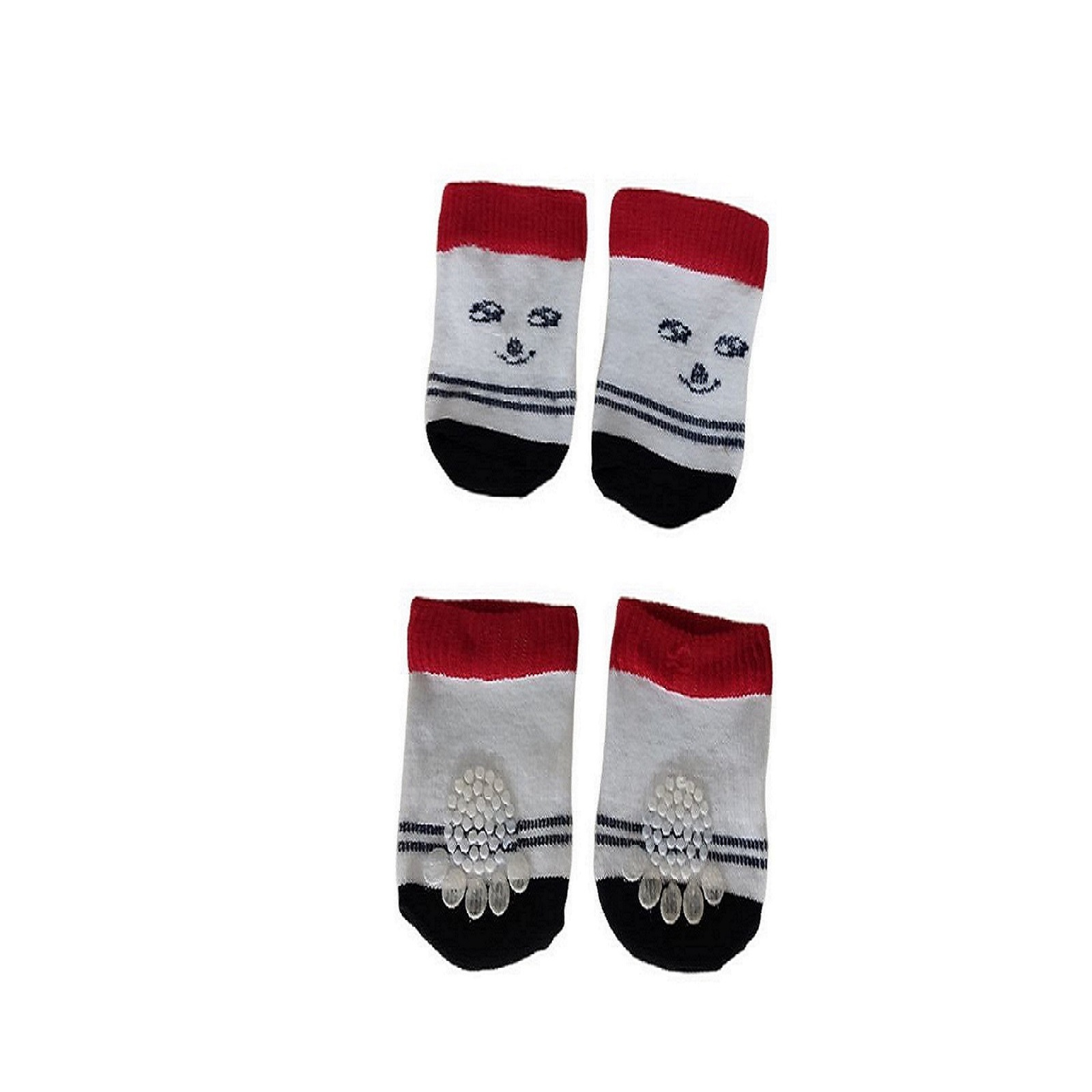 جوراب ها محافظ دست و پاهای کوچولوی دوست داشتنی شما میباشند و همچنین در هنگام راه رفتن در گرما و سرما کوچکترین آسیبی نمیبینند. در زیر جوراب ها پنجه های پلاستیکی قرار دارد که مانع لیز خوردن دلبندتان میشود و راه رفتن با جوراب همچنان برایشان آسان میباشد. جوراب ها از جنس نخ مرغوب وقابل شستشو میباشند و ضد حساسیت نیز هستند.
