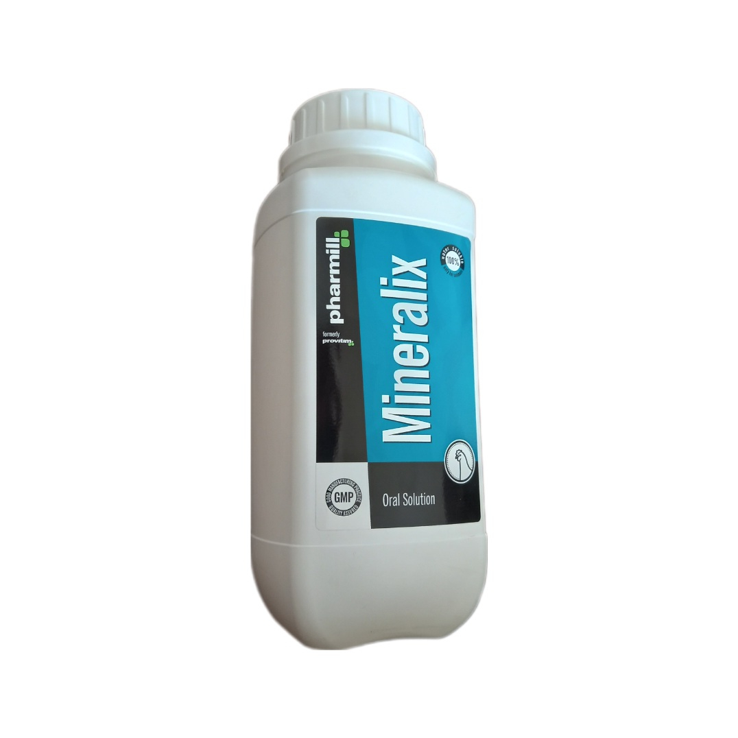 قطره مواد معدنی مینرالیکس (Mineralix)، تولید کشور لهستان، یک محلول تقویتی حاوی ماکرومینرال هایی نظیر کلسیم، فسفر، منیزیم، همچنین عناصر معدنی کمیاب نظیر منگنز، روی، مس، کبالت و آهن می باشد. این محلول در پیشگیری و درمان کمبودهای مواد معدنی در پرندگان قابل استفاده می باشد. همچنین به دلیل دارا بودن نسبت های مناسب کلسیم و فسفر، در بهبود کیفیت پوسته تخم تاثیر به سزایی دارد.
